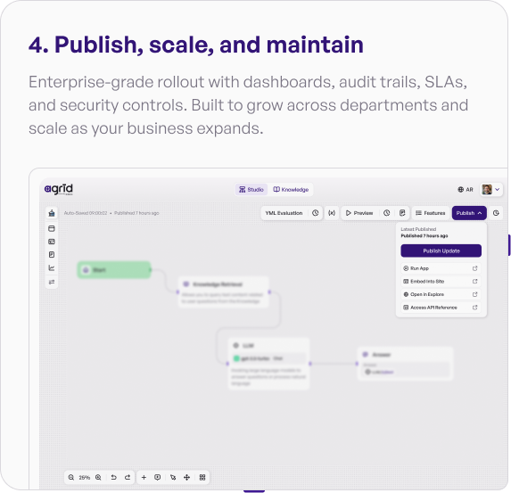 Launch with speed—our agents are pre-trained on Arabic data and customizable to your domain.